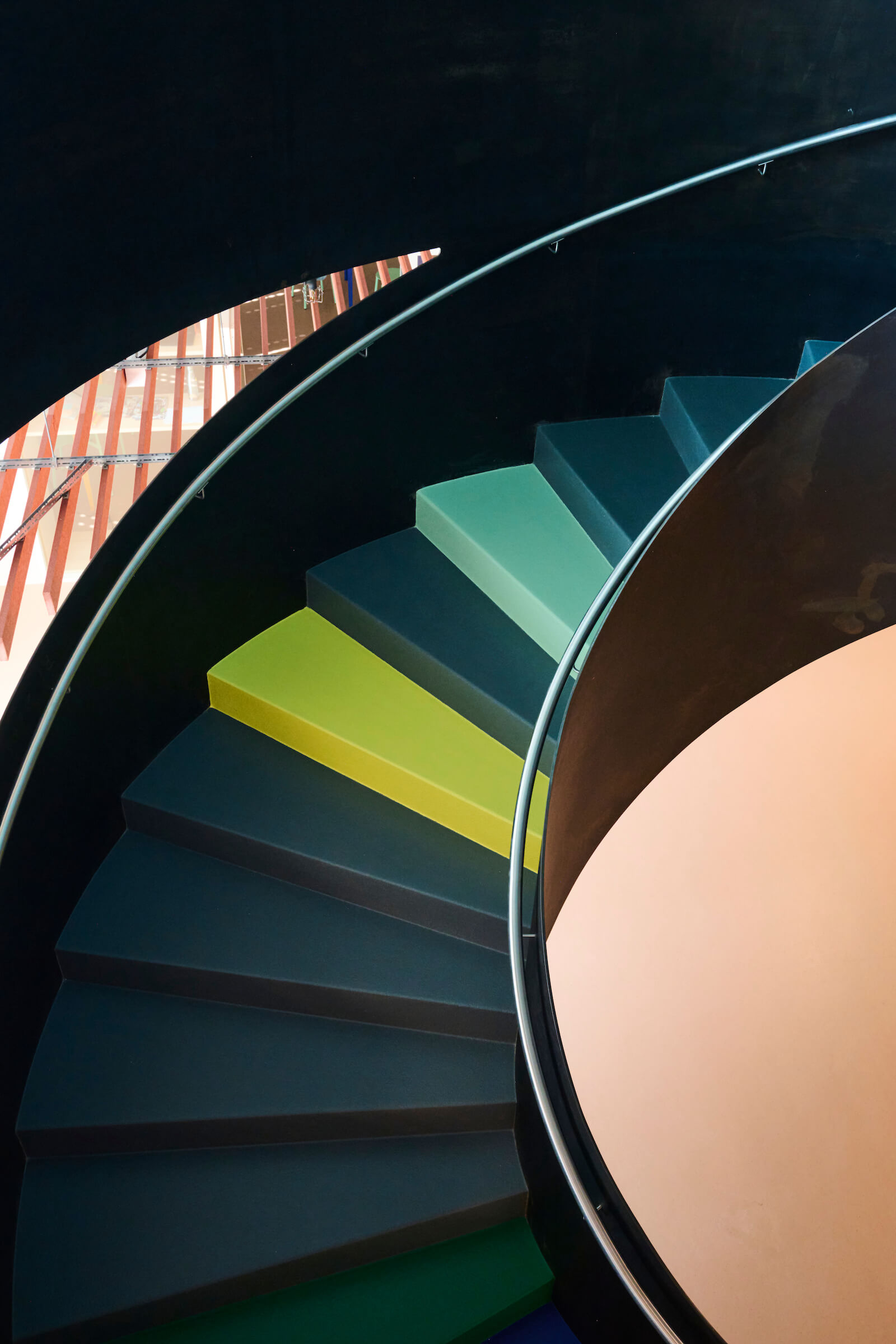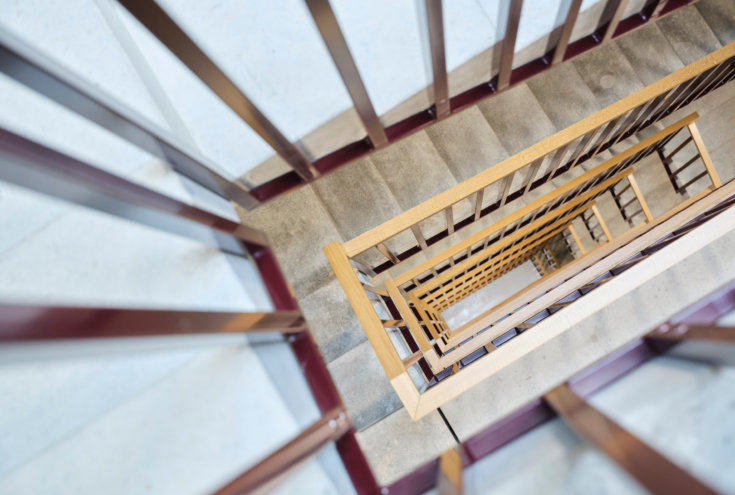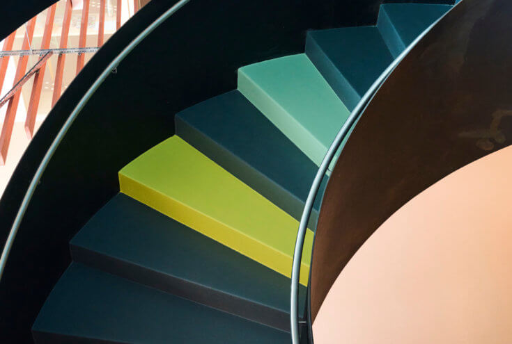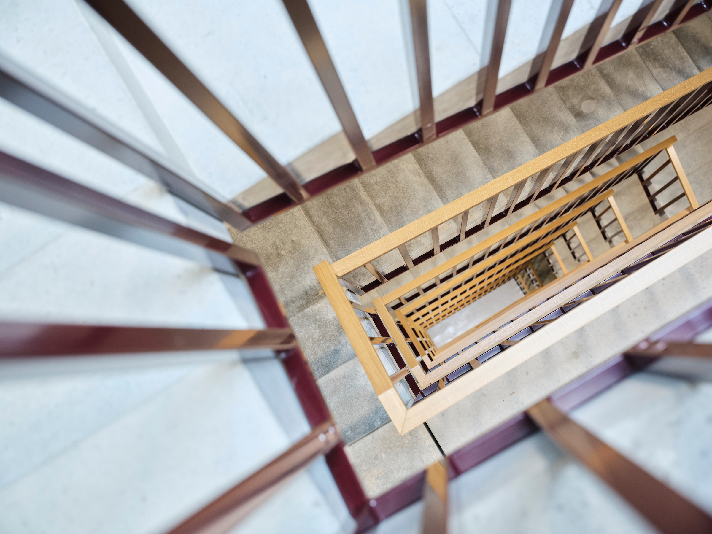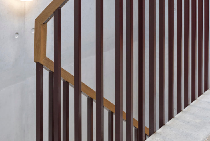 Garde-corps d’escalier en inox thermopoudre avec main-courante bois