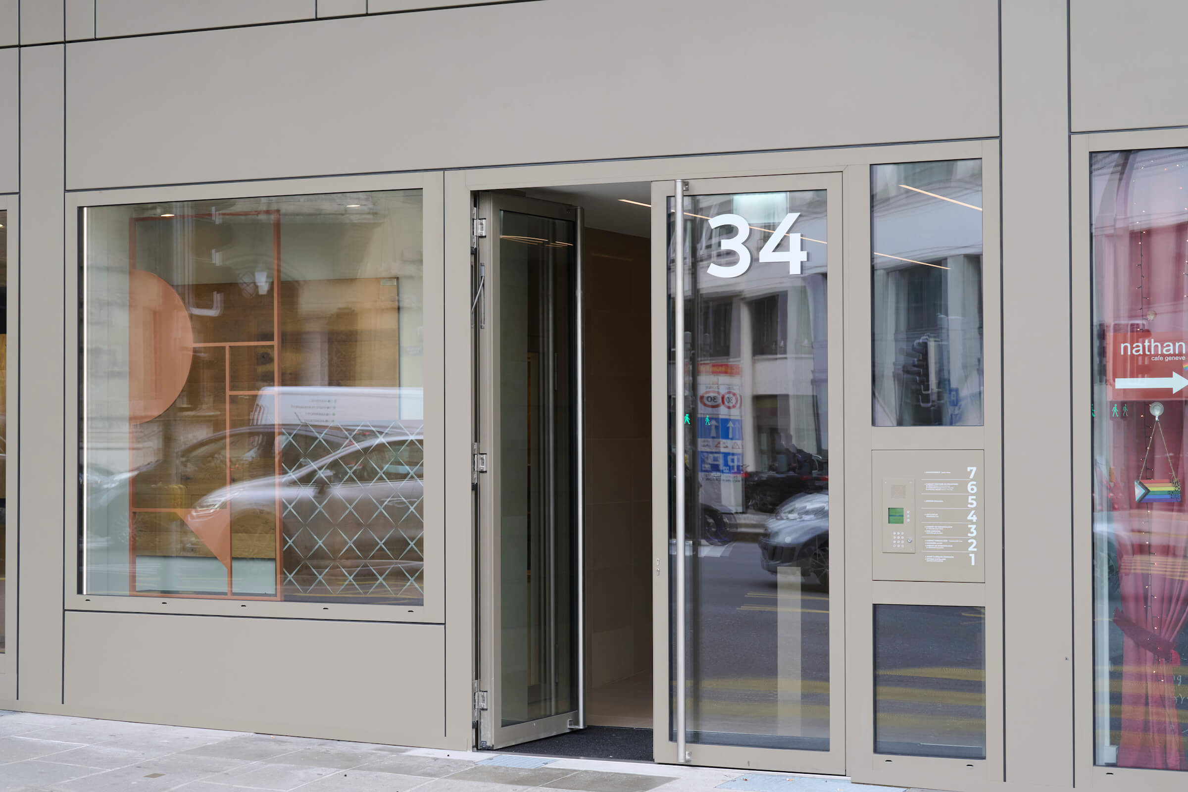 Entrée d’immeuble en acier thermopoudré – Forster Unico
