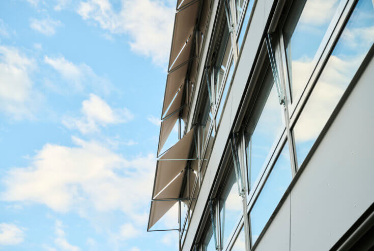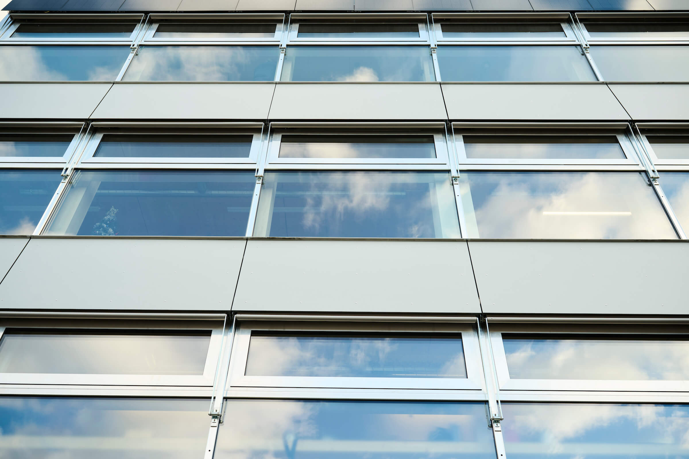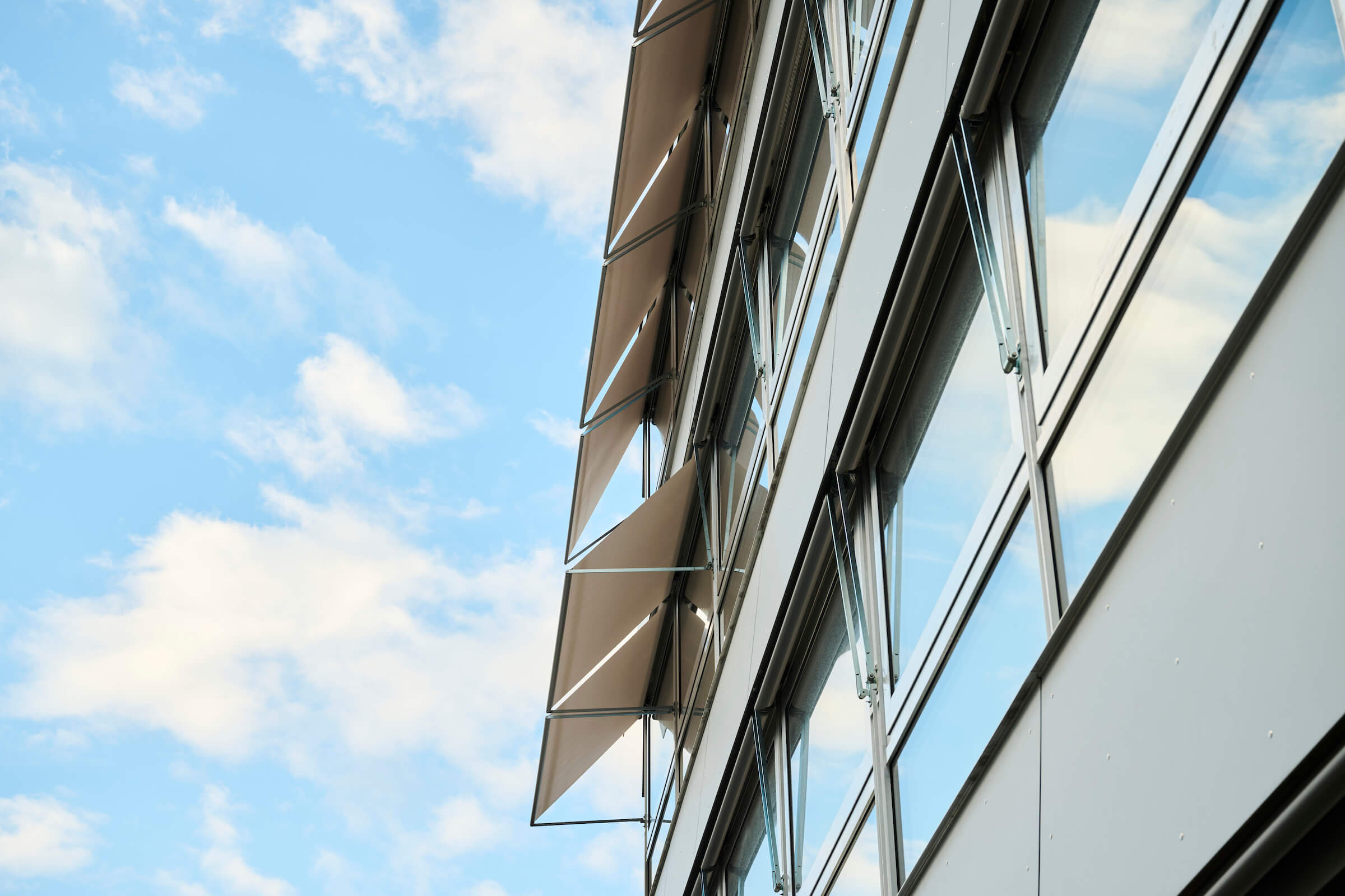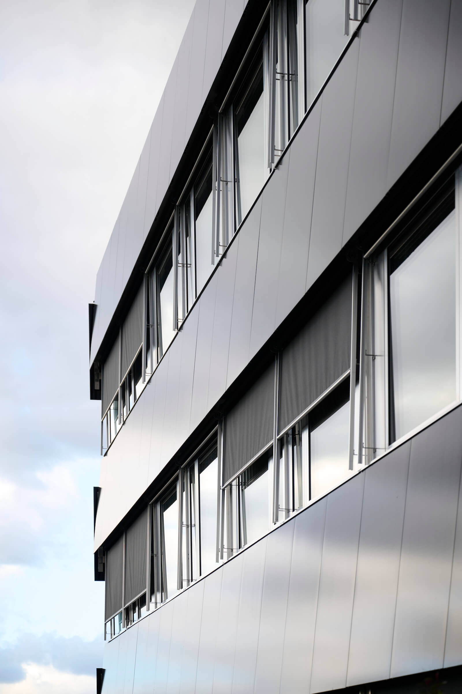 Façade vitrée en aluminium et brise soleil – Hueck Trigon